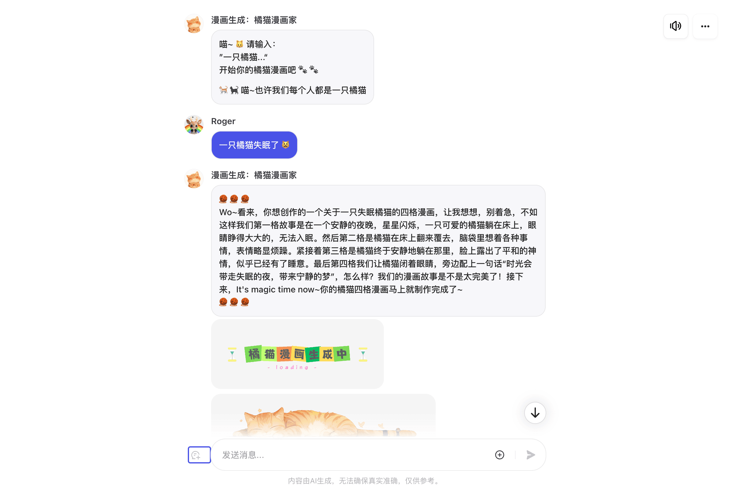一个能够一键帮你制作猫咪漫画的bot, 欢迎来到“橘猫漫画家”,您的口袋里的漫画工作室! 每一个关于橘猫的想法都能变成生动的漫画。 记住,也许我们每个人都是一只橘猫。。