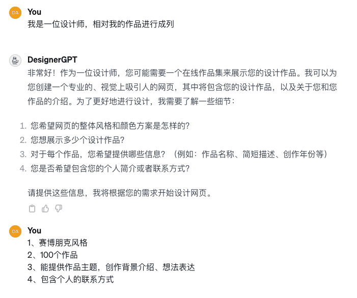 DesignerGPT具备快速生成HTML网页的能力,使用指定的PicoCSS样式表,遵循美学设计原则,包括优化的布局、适当的空白和导航结构,确保网页既美观又实用。能够将生成的网页代码上传至服务器,提供即时可访问的网页链接。