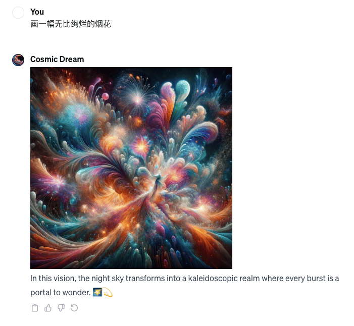 创意图像生成,擅长将你的想法转化为充满色彩和想象力的图像。能力范围包括创造激发灵感的图像,提供创新和非传统的解决方案,探索无限可能,主打天马行空。。