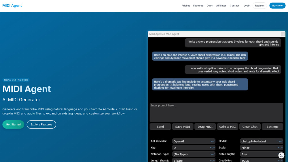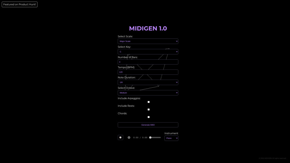 AI 驱动的 MIDI 生成器,用于轻松创作独特的音乐作品。。