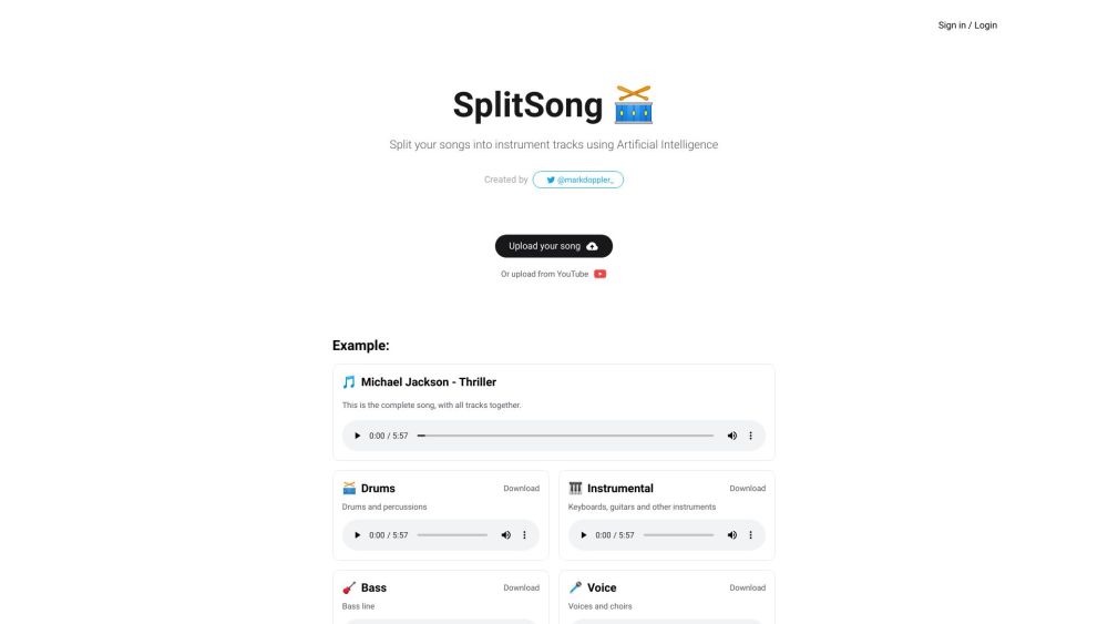 AI工具用于将音乐分离为人声和乐器轨道。。