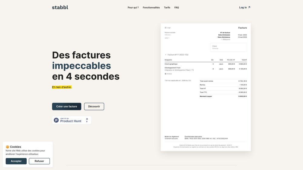 Stabbl是一个为自由职业者提供的法国开票工具,简化发票创建过程并确保法律合规。。