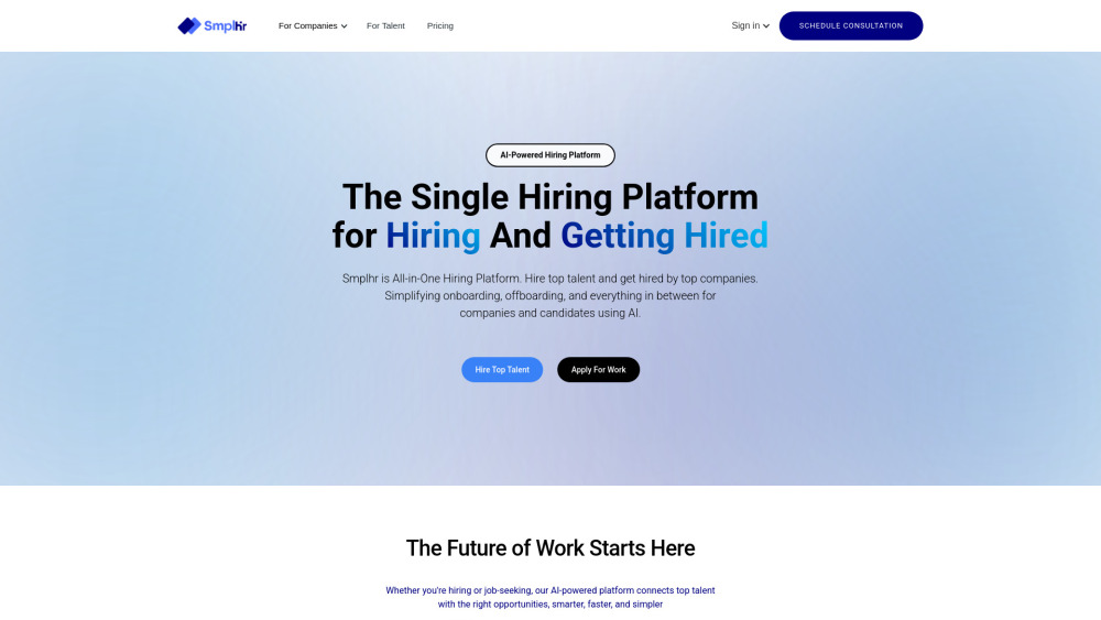 Smplhr是一个全能的AI驱动HR平台,用于招聘和管理人才。。
