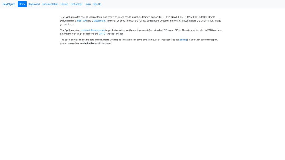 TextSynth 通过 API 和游乐场提供对各种人工智能模型的访问。。