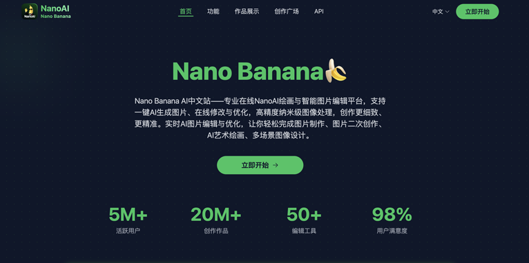 Nano Banana AI中文站——专业在线NanoAI绘画与智能图片编辑平台,支持一键AI生成图片、在线修改与优化,高精度纳米级图像处理,创作更细致、更精准。实时AI图片编辑与优化,让你轻松完成图片制作、图片二次创作、AI艺术绘画、多场景图像设计。。