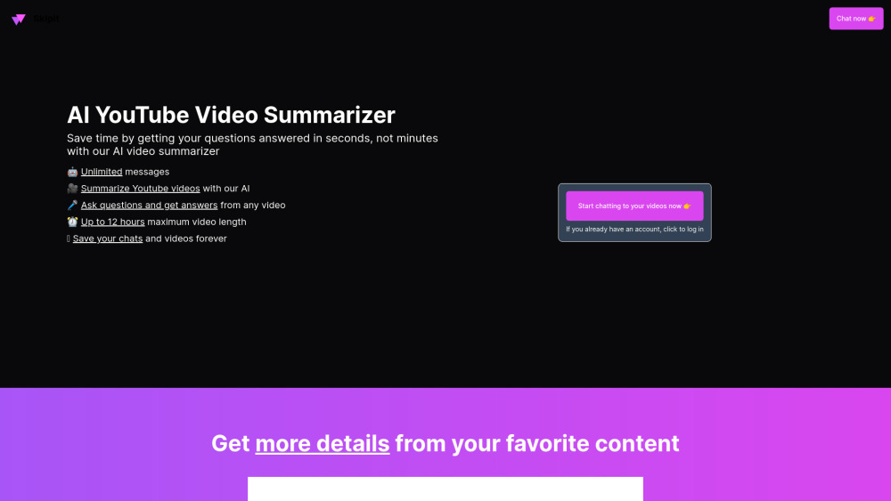 AI工具,可将视频总结为简洁内容,节省时间并减少信息过载。。