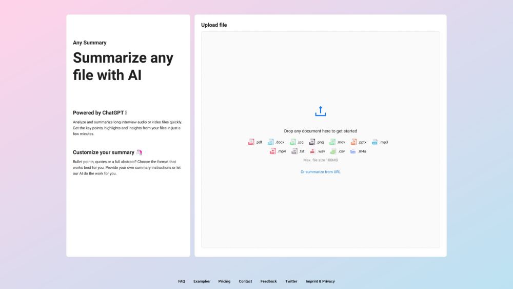基于AI的文本、音频和视频文件摘要。。