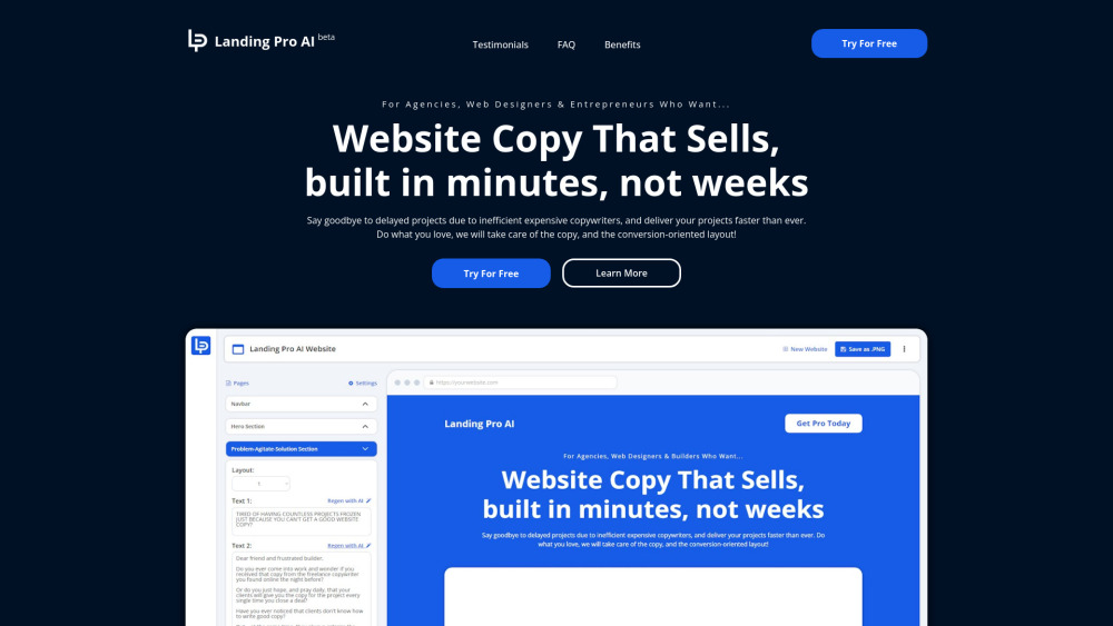 Landing Pro AI快速生成网站文案和线框图,加快项目上线速度。。