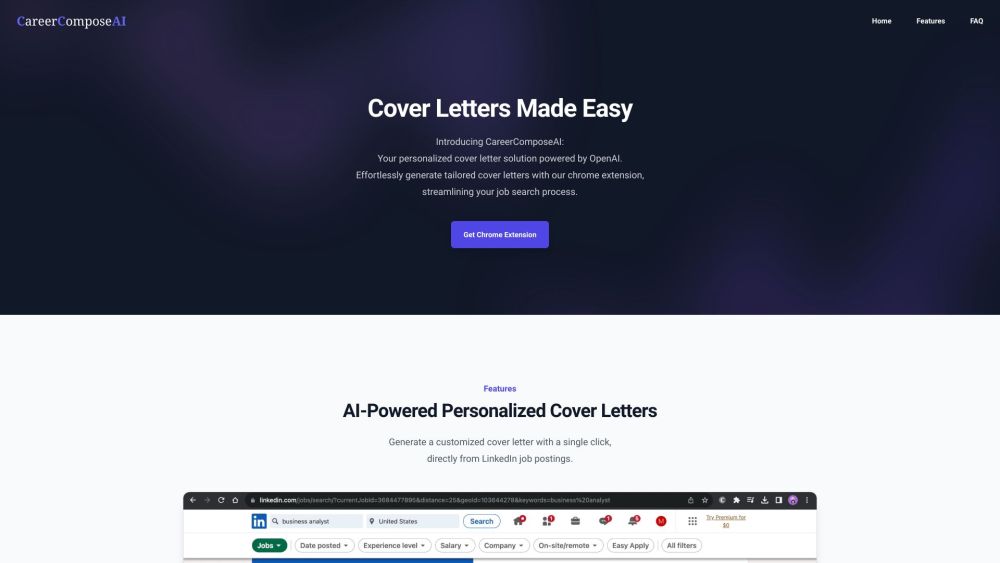 Easy Cover Letter通过结合简历和招聘广告快速生成求职信。。