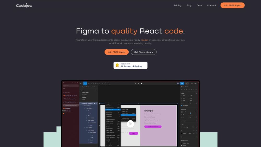 Codejet将Figma设计转换为可投入生产的代码,提高编码速度和效率。。