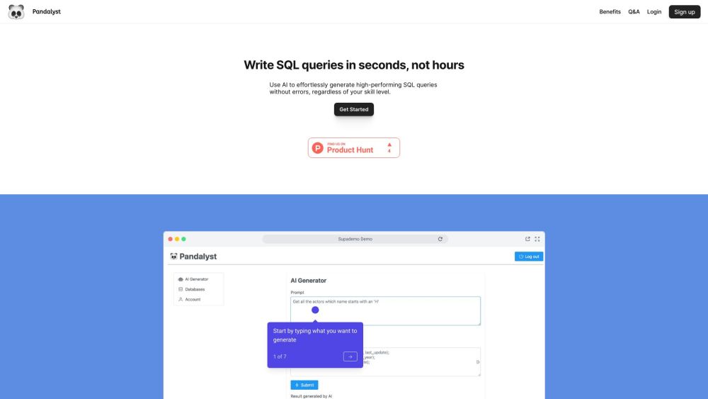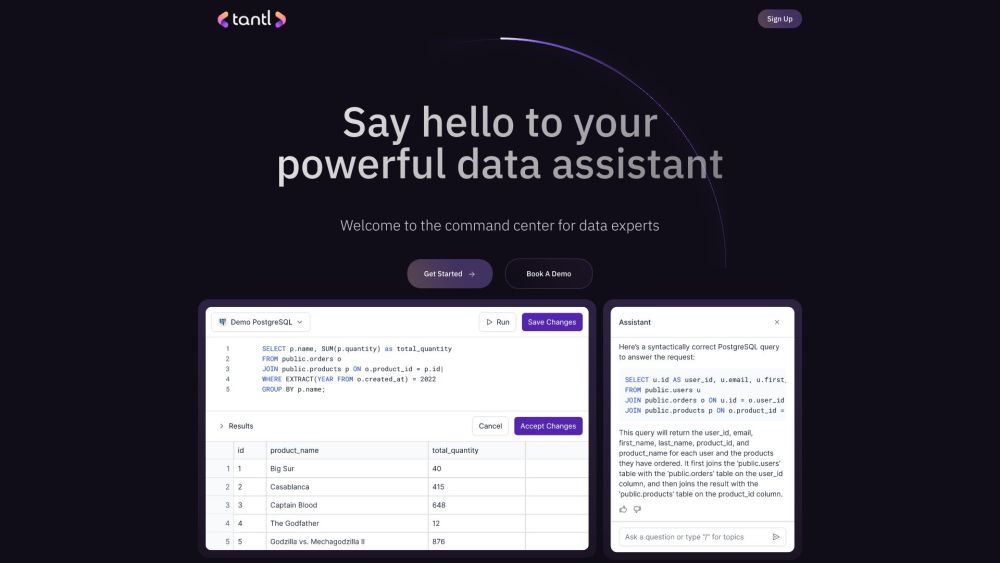 AI驱动的工具,从自然语言生成SQL查询,简化数据访问。。
