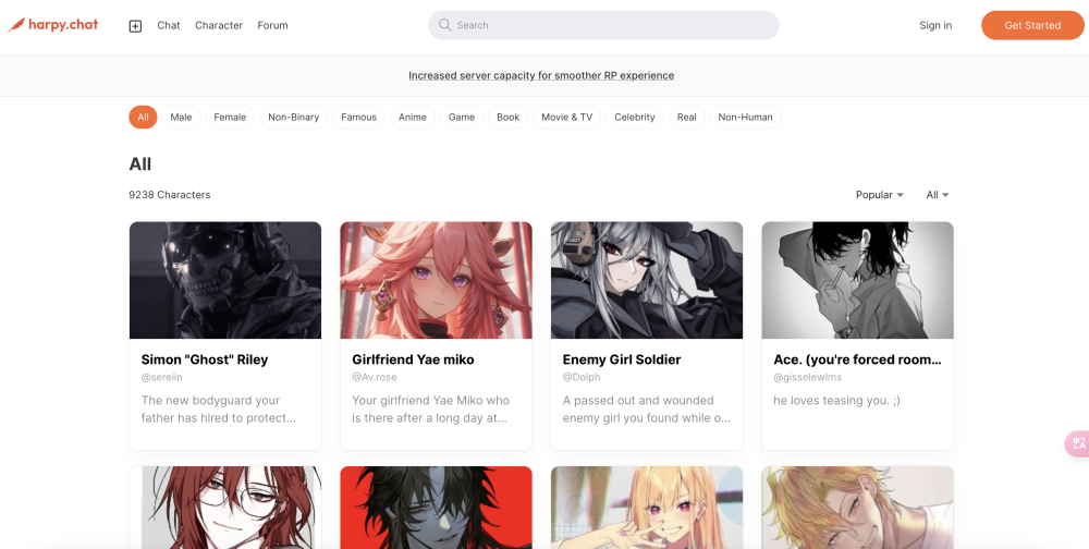 一个可以与数百万个 AI 角色聊天的免费平台,具有角色扮演功能。。