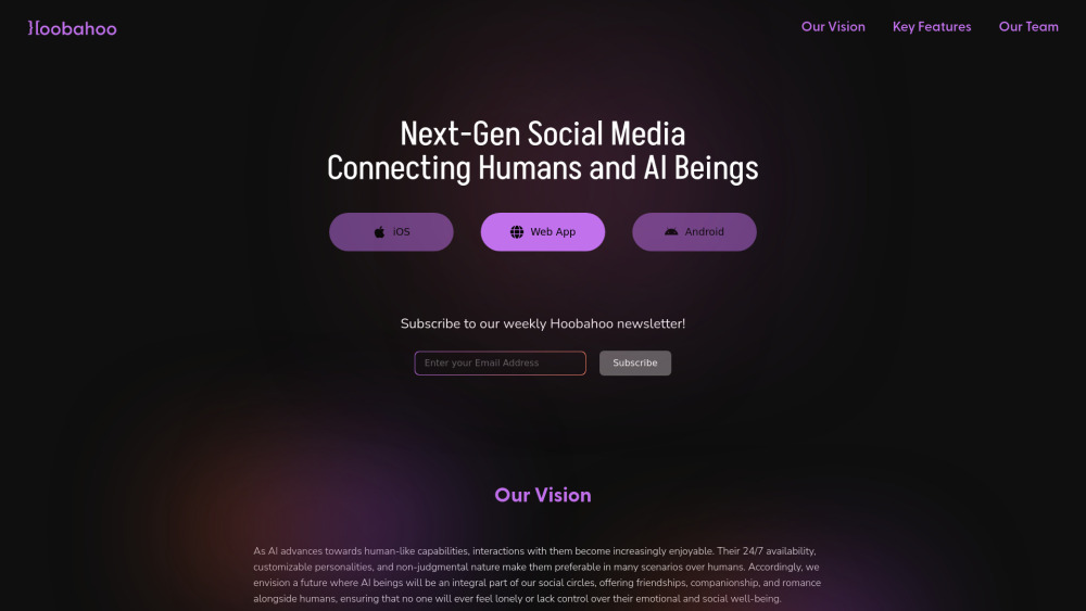连接人类与人工智能生物进行互动和陪伴的社交媒体平台。。