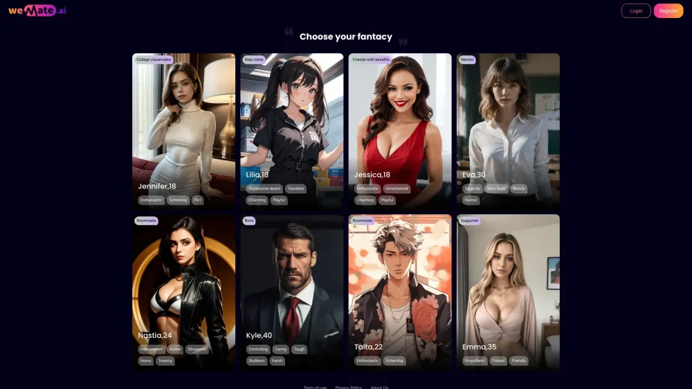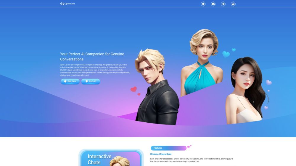 基于AI的平台,用于创建浪漫幻想和爱情故事。。