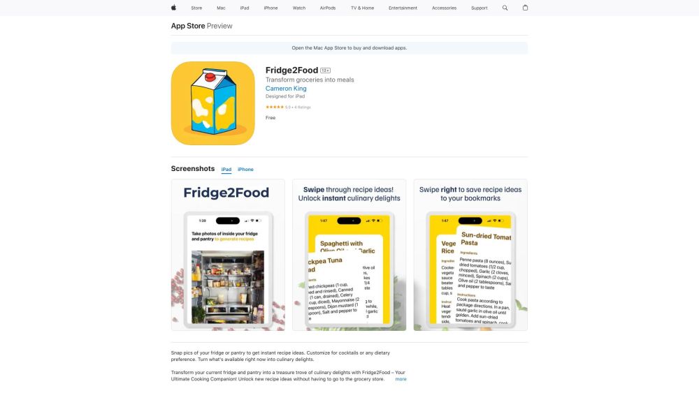 基于拍摄的食材,由AI提供的食谱推荐应用。。