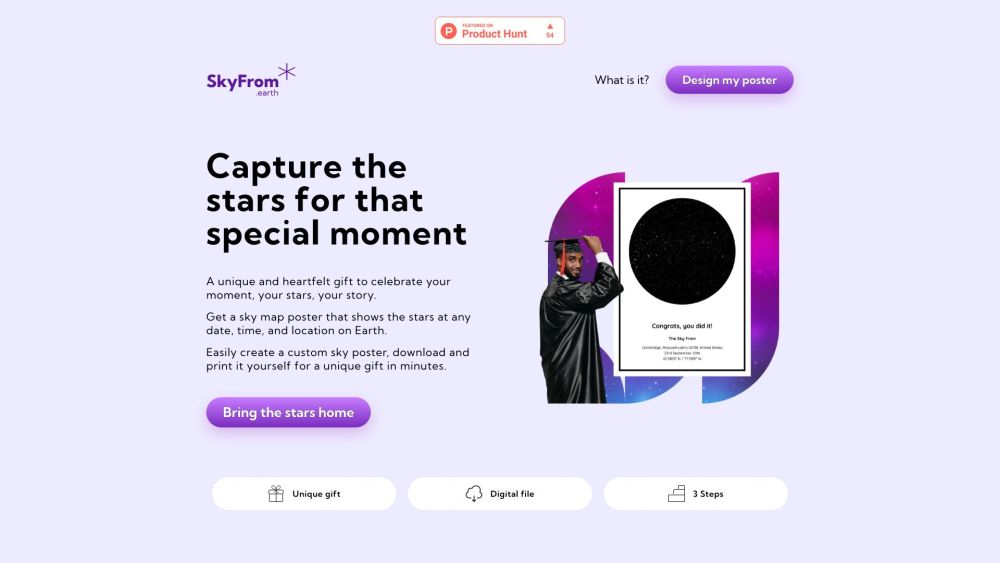 SkyFrom 根据任意日期、时间和地点创建定制的星空地图海报。。