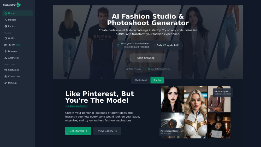 基于 AI 的虚拟试穿和时尚工作室,为个性化风格和商业解决方案提供服务。。
