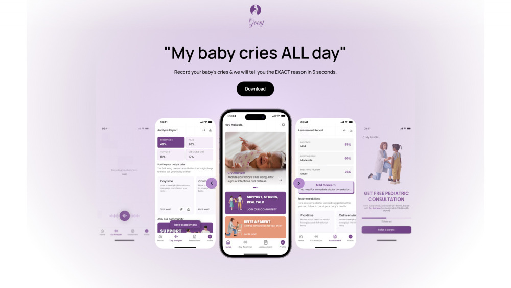 AI工具分析婴儿哭泣的原因(饥饿、困倦、不适),提供自信的见解。。