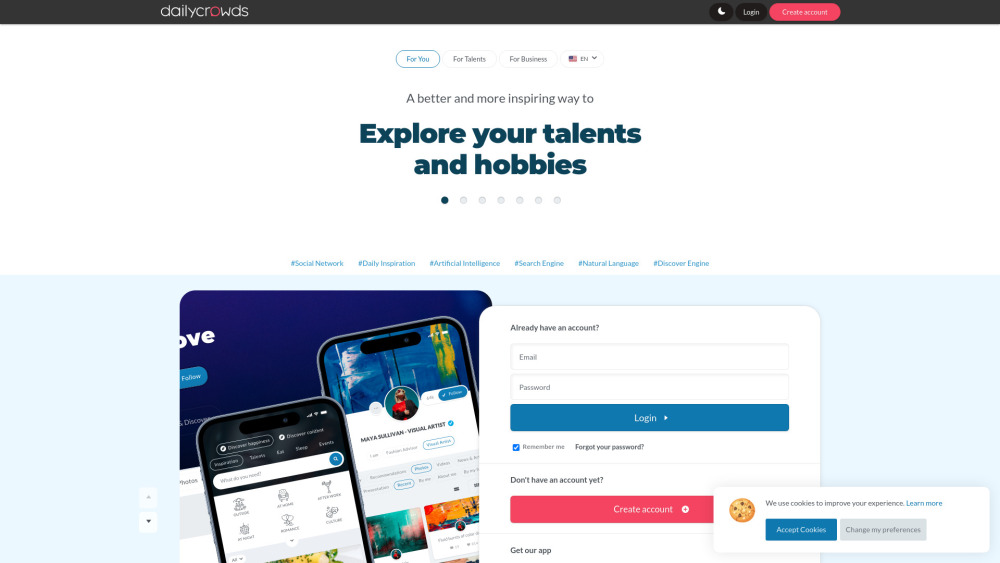 一个具有发现引擎和语义搜索的社交网络,用于日常灵感。。