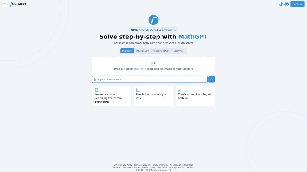 AI数学 AI作业助手 AI测验生成器 AI视频生成器 图表AI