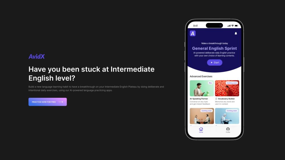 基于AI的英语练习应用,帮助中级学习者提高技能。。