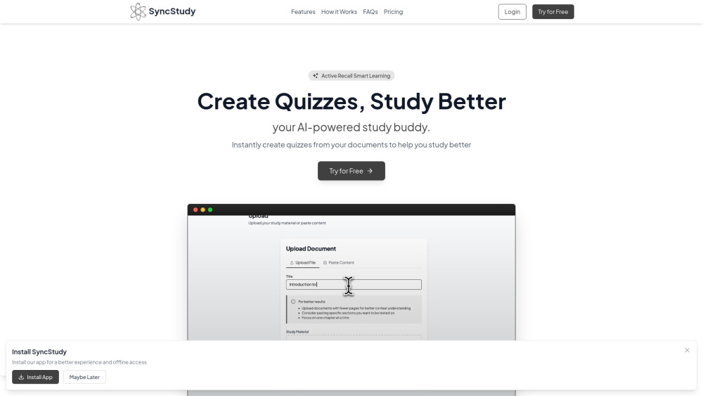 基于人工智能的学习工具,通过文档创建测验,实现更智能的学习。。