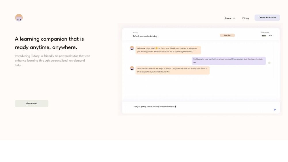 Tutory 是一个友好的 AI 辅导员,提供个性化的、按需的学习支持,覆盖全球。。