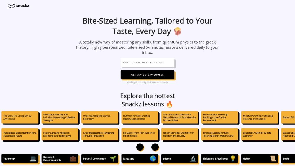 Snackz提供个性化的、精简的学习计划,涵盖多个主题。。