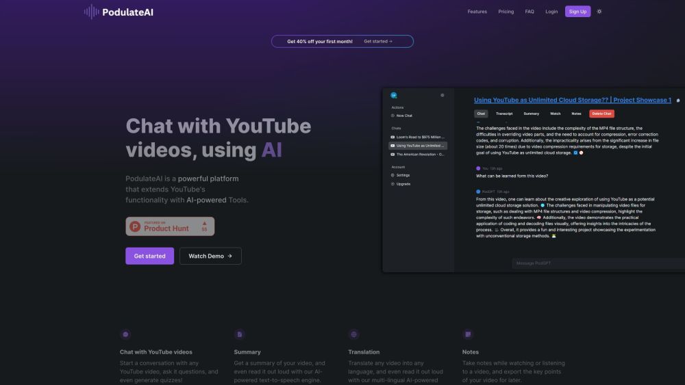 PodulateAI通过人工智能增强YouTube的视频对话、总结、翻译和记笔记功能。。