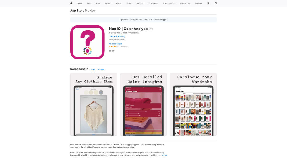 为时尚爱好者提供色彩分析的应用,以确定色彩季节并做出明智的服装选择。。