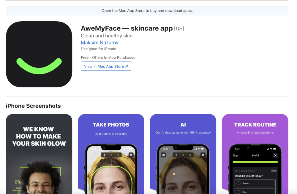 使用AI来检测痤疮并提供个性化护肤指导的护肤应用。。