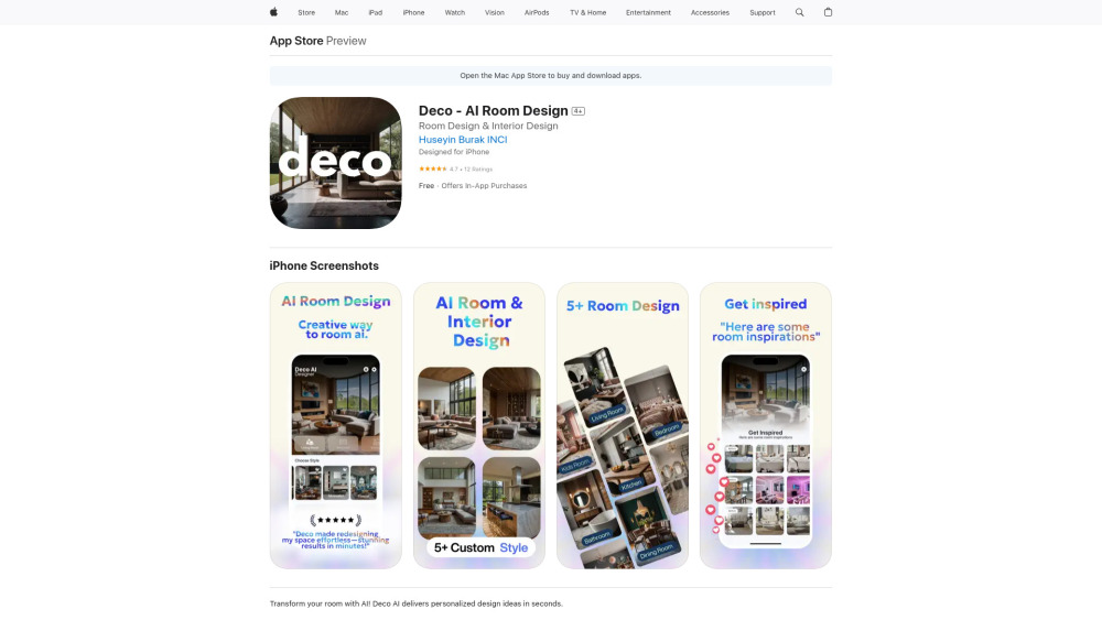 基于AI的应用程序,快速提供个性化房间设计创意。。