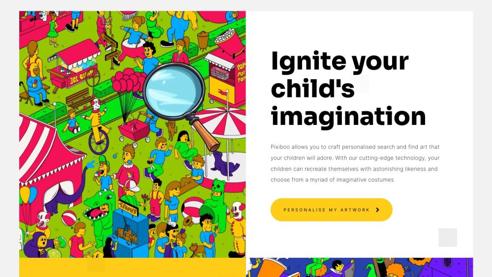 Pixiboo 让您创建以您的孩子为主题的个性化搜索与发现艺术作品。。