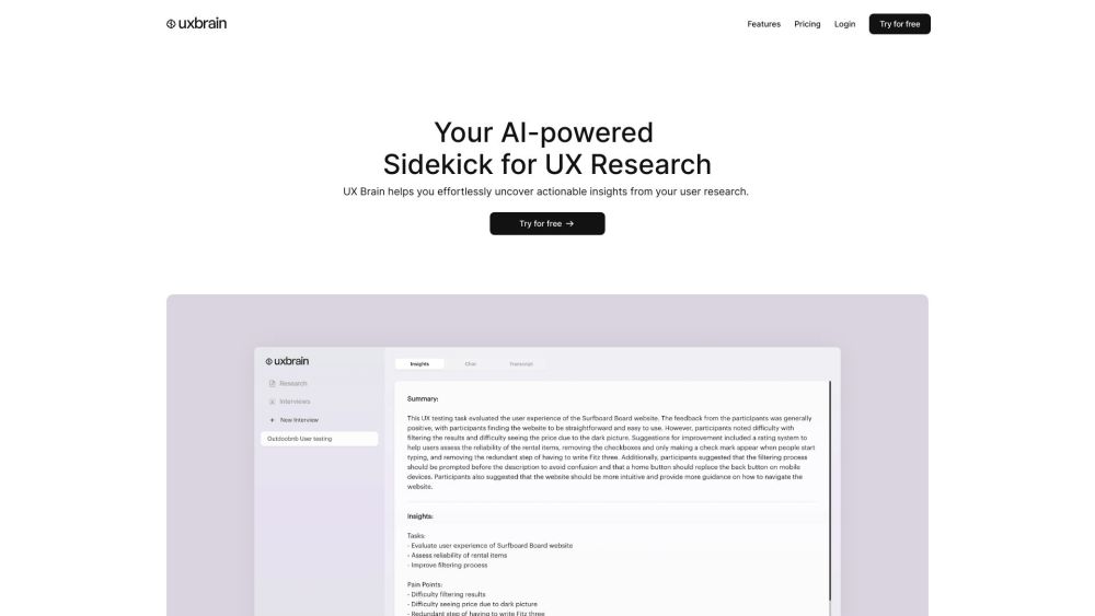 用户研究是一个用于用户研究、可用性测试和基于人工智能的综合分析的平台。。