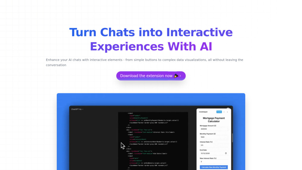InstaSnippet 将文本转化为互动 AI 体验和来自 ChatGPT 的 React 应用。。