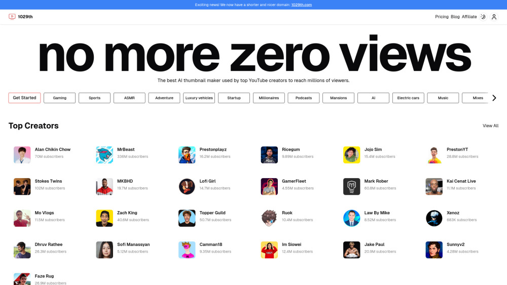 为 YouTube 创作者提供的 AI 缩略图制作工具。。