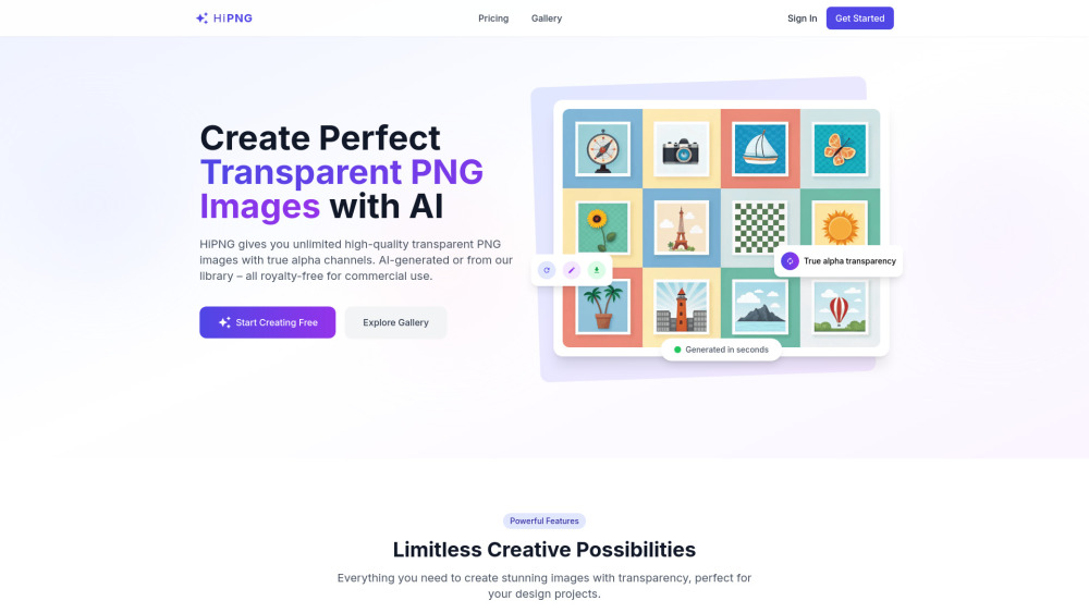 AI透明PNG生成器和图片库,具备商业使用权。。