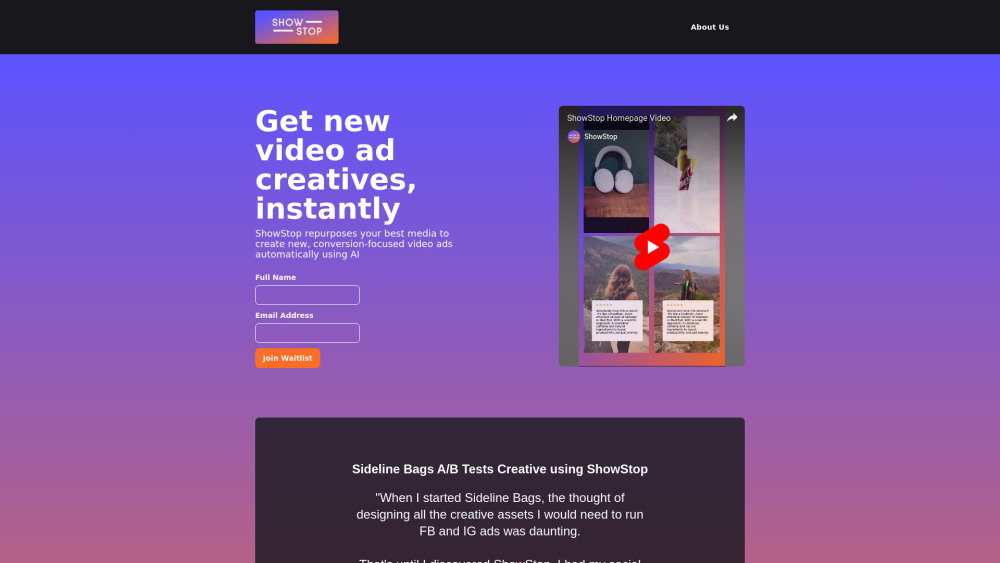 一个由人工智能驱动的平台,用于从现有媒体中创建以转换为导向的视频广告。。