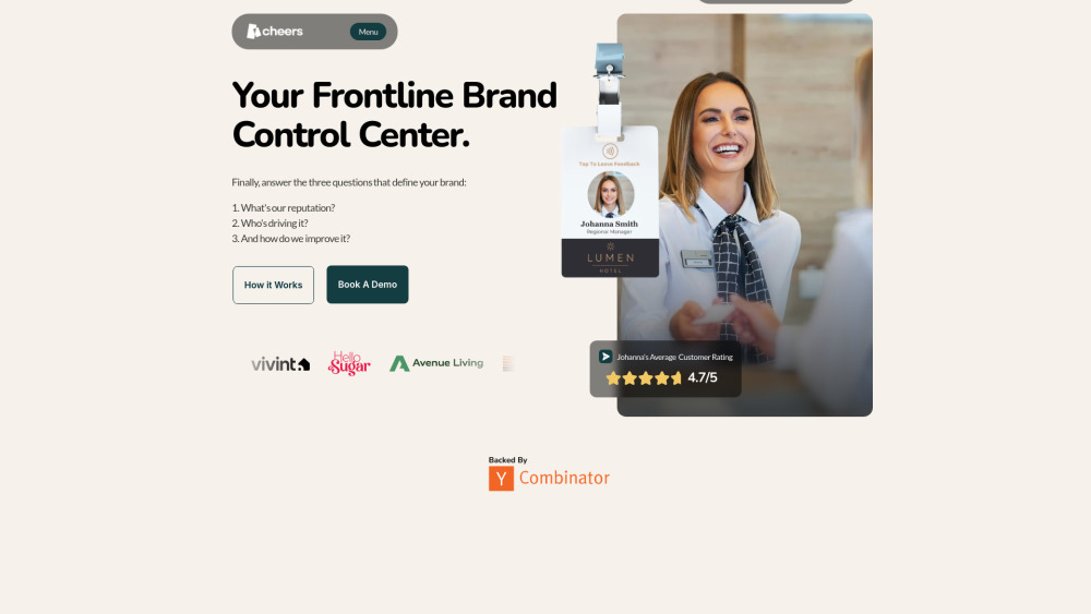 Cheers是一个AI驱动的平台,不仅展示你的品牌声誉是什么,还告诉你一线团队中的谁在推动它。我们将品牌分析从猜测转变为精准的科学。。