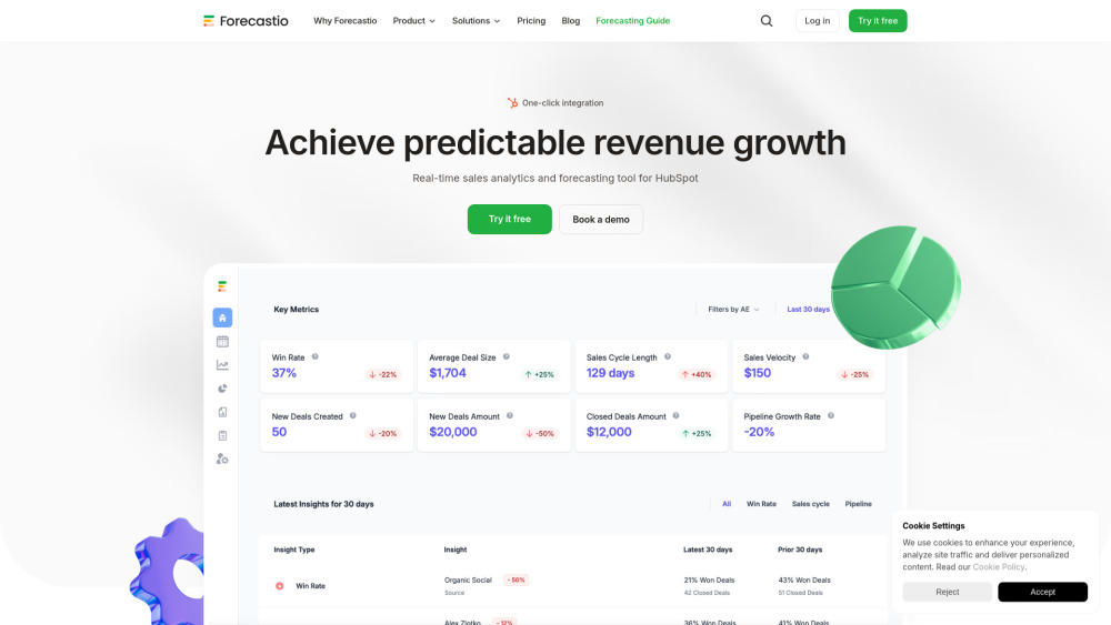 用于HubSpot的销售绩效管理和预测工具,增强销售分析。。