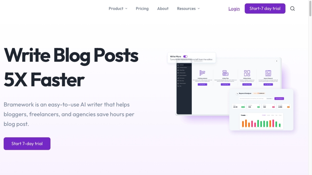 基于人工智能的平台,帮助博客作者更快地创建SEO优化的内容。。