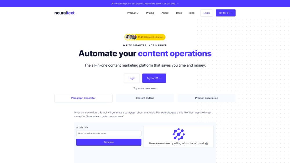 AI 文章撰写工具,能够大规模生成 SEO 优化内容。。