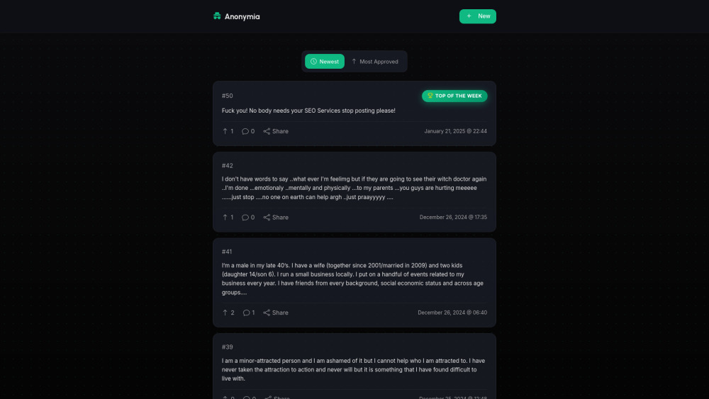 Anonymia是一个可以在安全私密的社区中分享匿名忏悔的平台。。