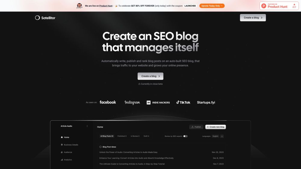 基于人工智能的SEO博客创建和管理平台。。