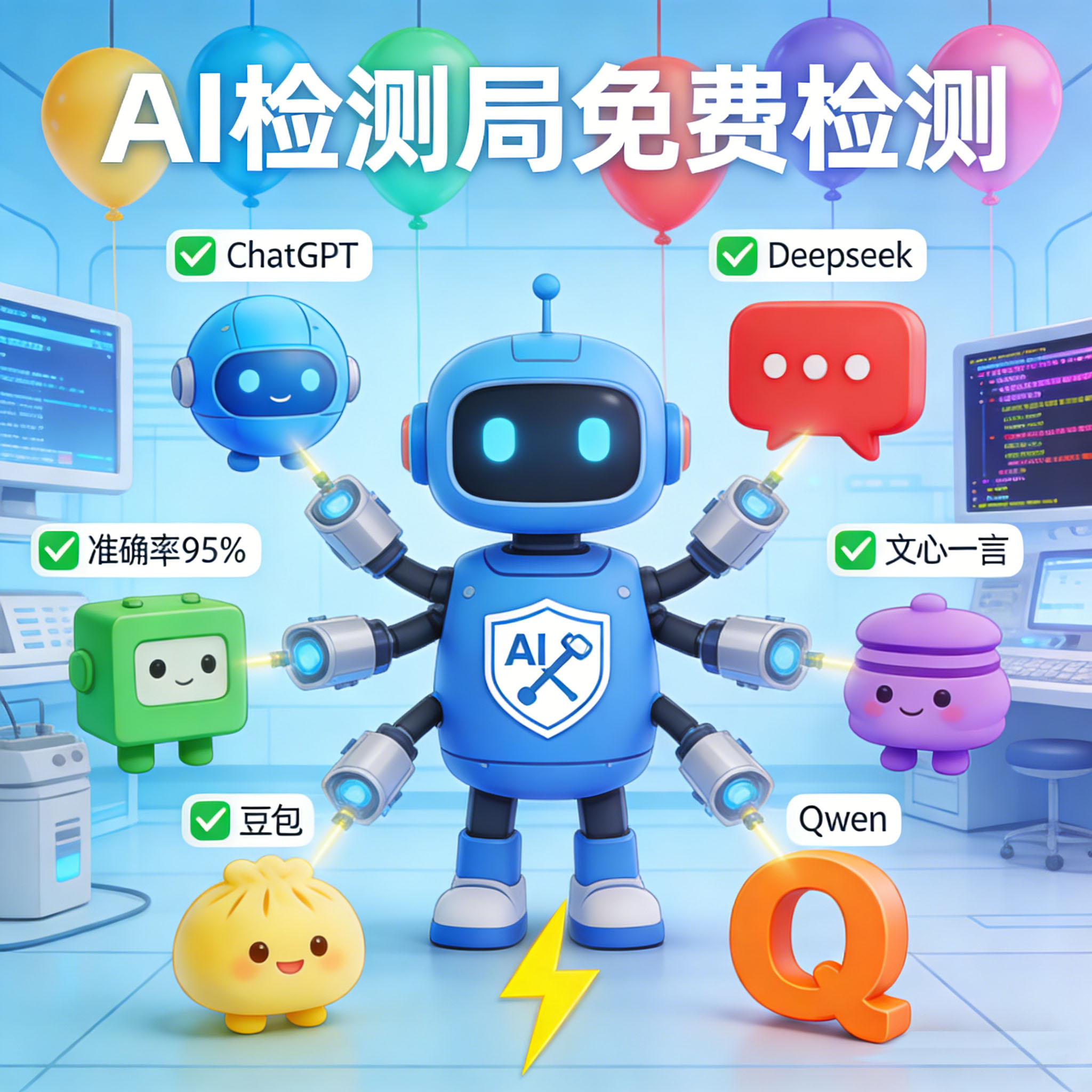 AI检测局免费检测ChatGPT/Deepseek/文心一言/豆包/元宝/Qwen等AI生成文本内容,多个AI模型同时检测,速度快、准确率高。。