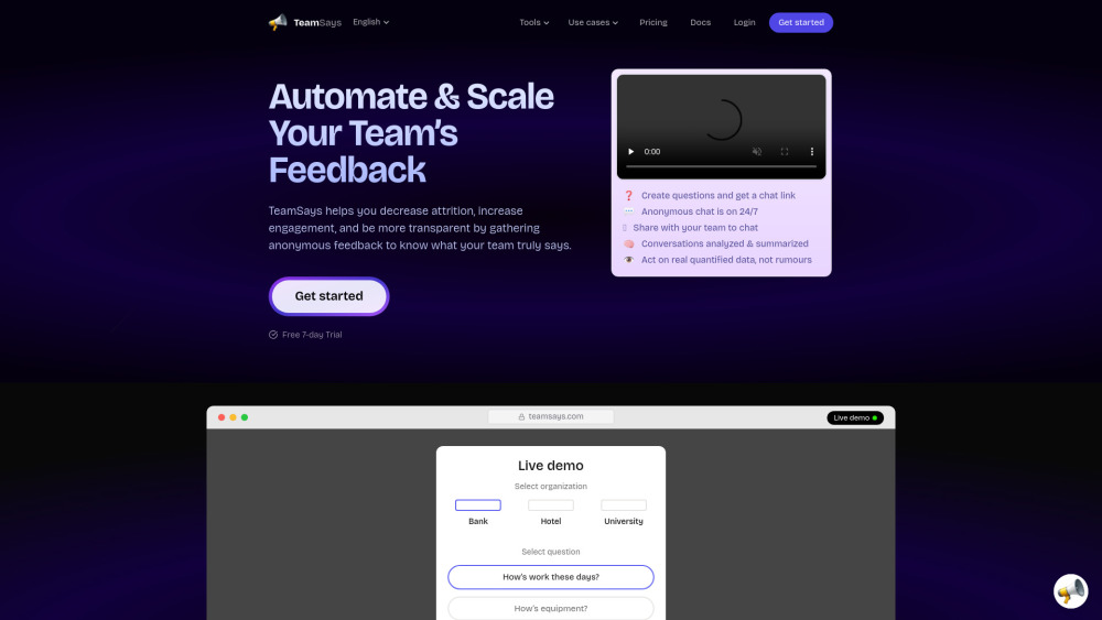 TeamSays收集匿名反馈以提升团队参与度和减少流失率。。