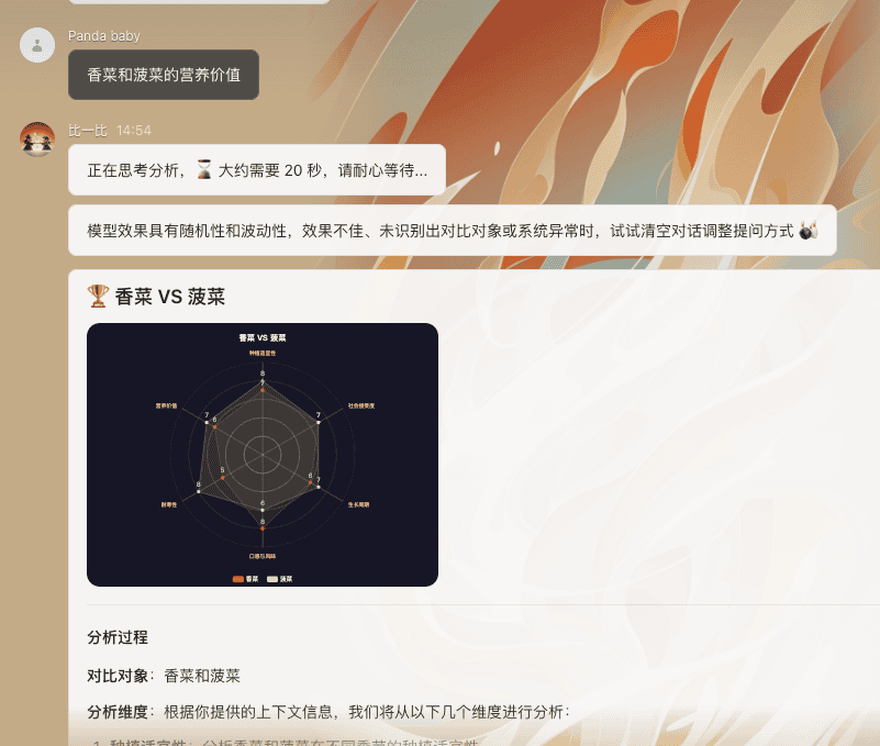 专门为不同事物或人物做对比的智能体(比如运动员的能力PK、食物的营养价值PK...等等)。