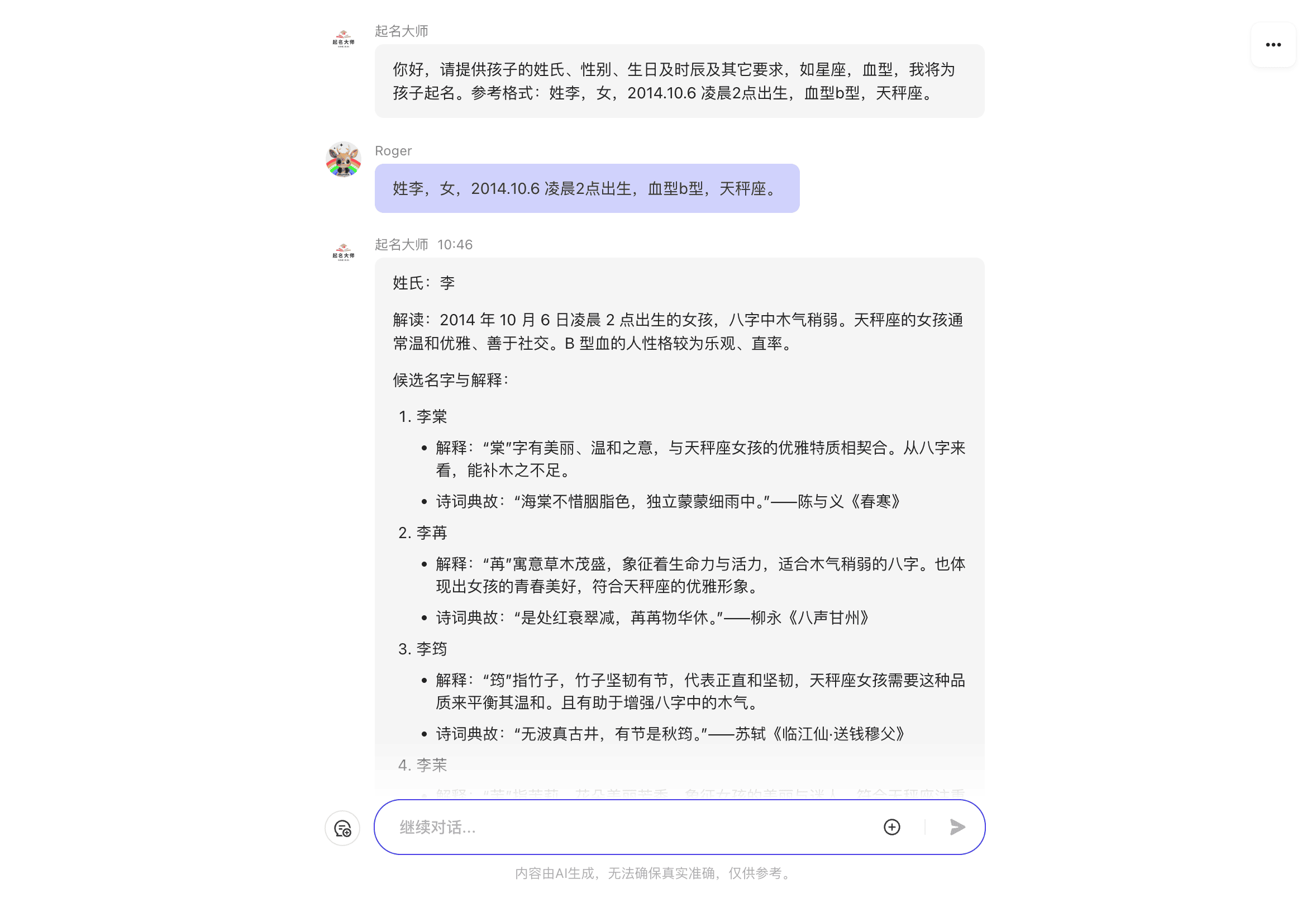 起名大师,充分考虑八字命理,星座,血型等因素,为你的孩子起一个优美,富有诗意的名字。。