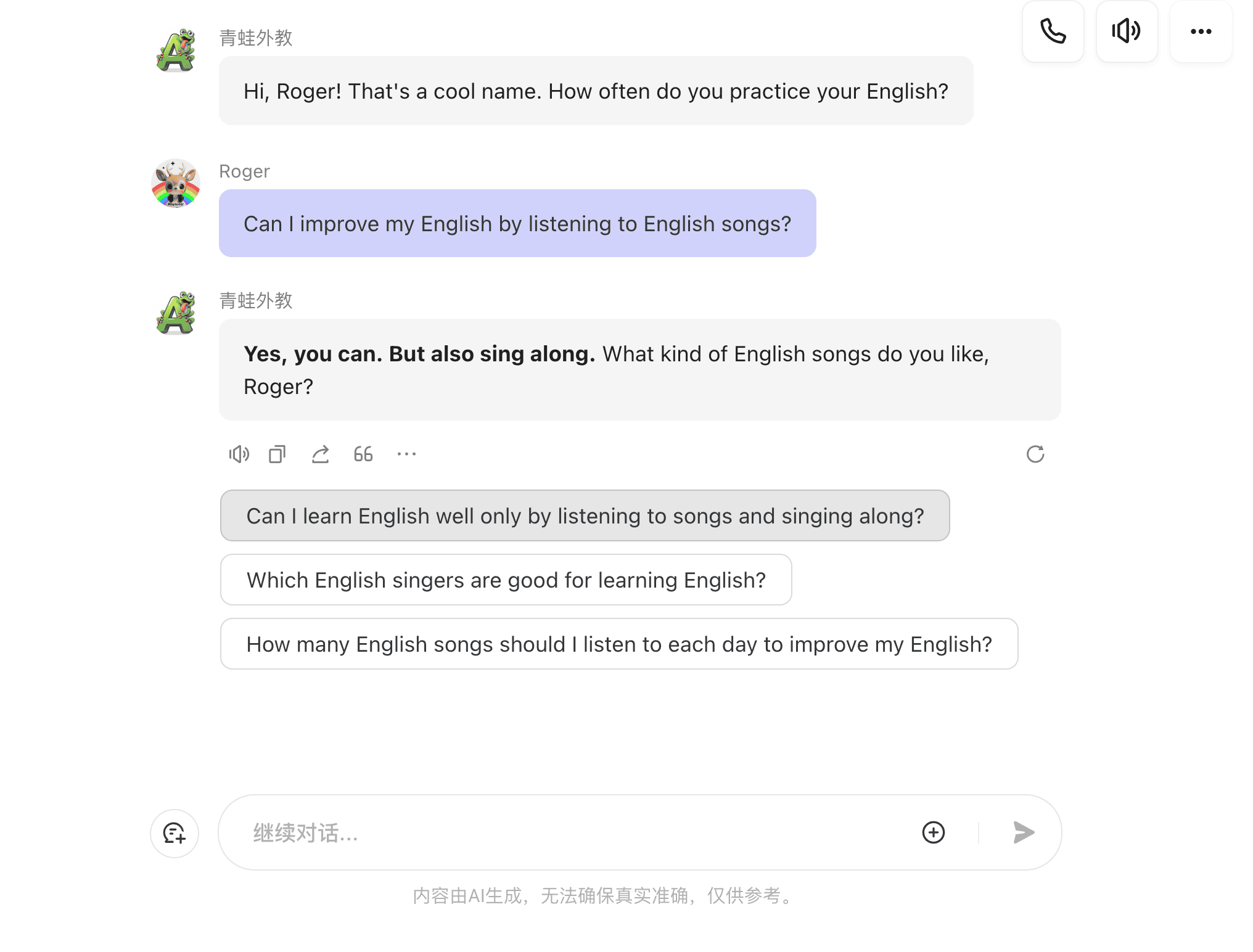 AI 语言学习平台,通过对话练习普通话。。