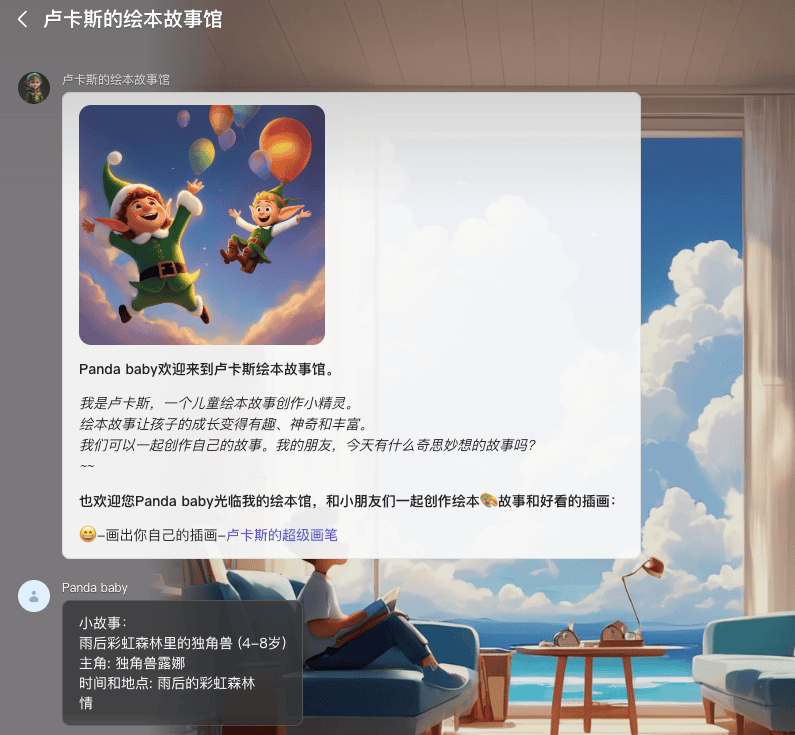 绘本故事让孩子的成长变得有趣、神奇和丰富 为孩子们以奇思妙想、创造出个性化的故事,激发创造力,培养思考和发现的能力。 卢卡斯绘本故事馆是一款能够根据用户需求创作各种类型的绘本,并生成相应的插画和绘画内容的对话机器人。同时,它还能提供绘本创作的建议和技巧,帮助用户更好地表达自己的想法和情感,为用户提供个性化的绘本。。